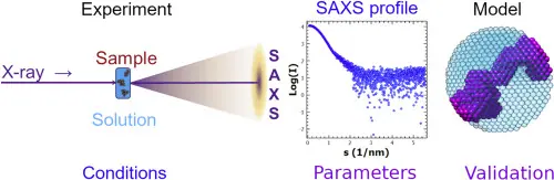Điều thú vị là ý tưởng cơ bản đằng sau một thí nghiệm SAXS lại rất đơn giản: chiếu một chùm tia X đơn sắc lên một dung dịch chứa vật liệu sinh học, sau đó thu tia X tán xạ từ mẫu tại góc nhỏ (0.1° – 10°) bằng detector 2D và tái tạo hình dạng 3D cùng các thông tin liên quan từ dữ liệu thu được [6].